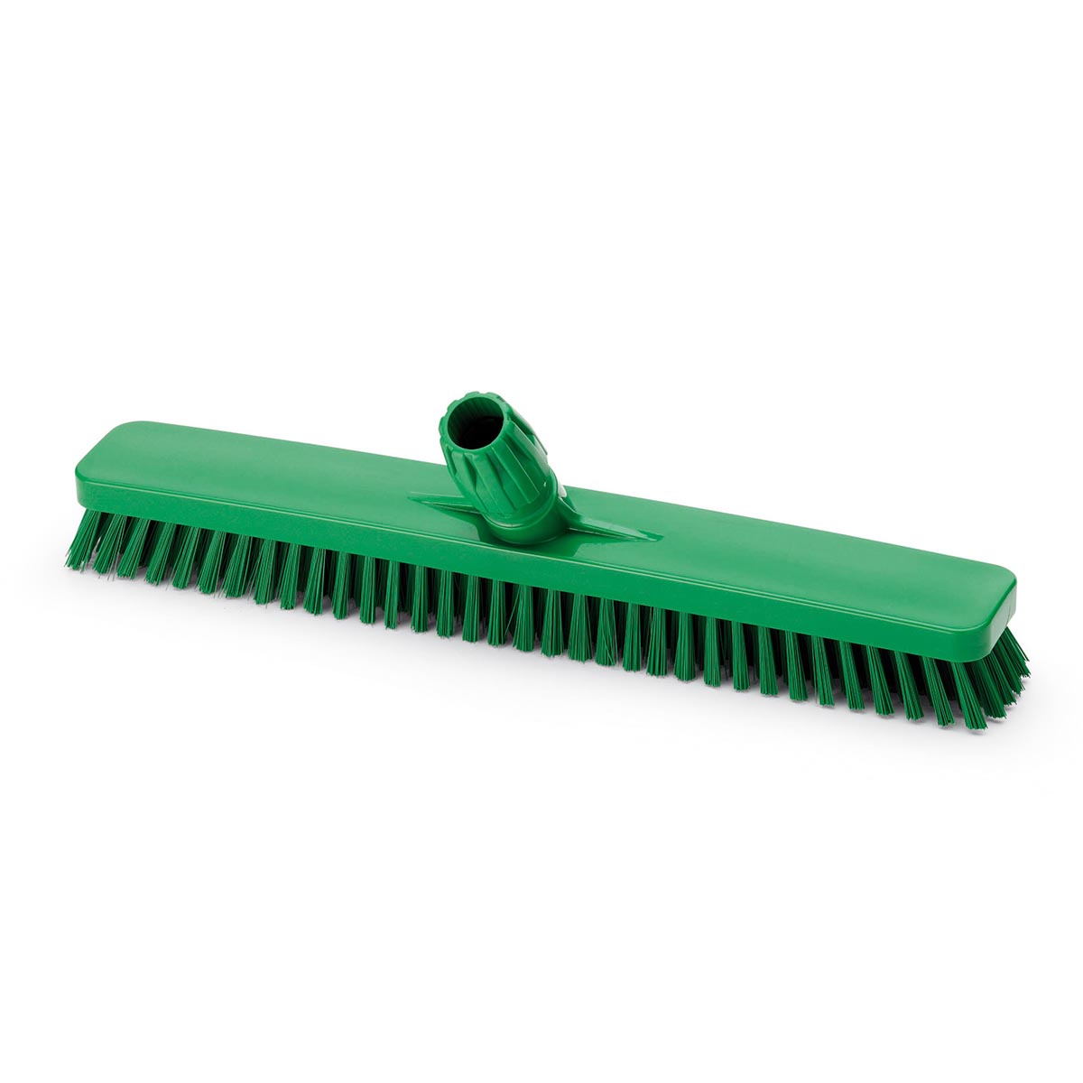 Spazzolone con setole corte per la pulizia di sporco ostinato. Attacco universale compatibile con tutti i principali tipi di filetto (ITA-FRA-GER-USA) e dotato di ghiera per manici Ø 21-25 mm.